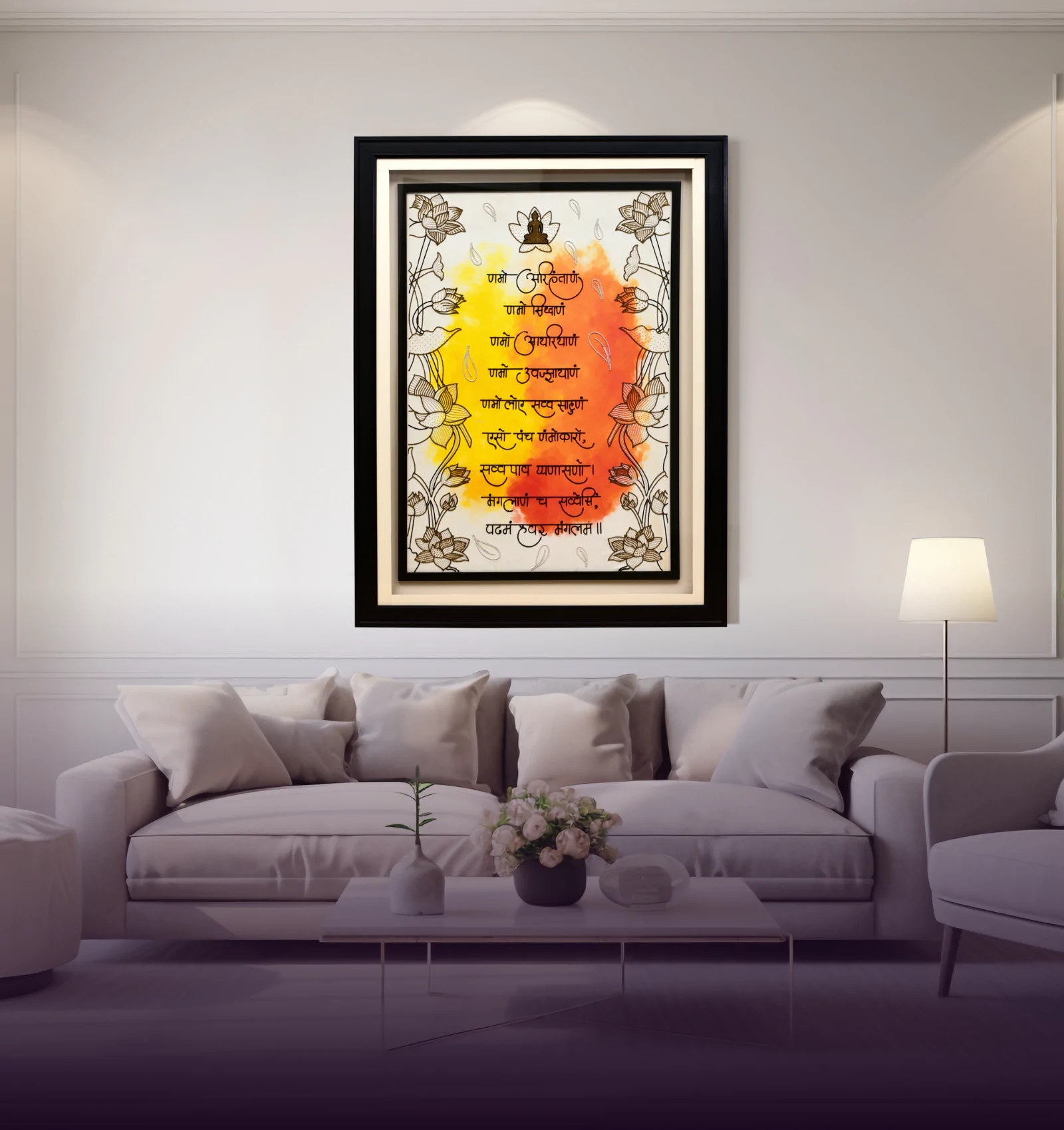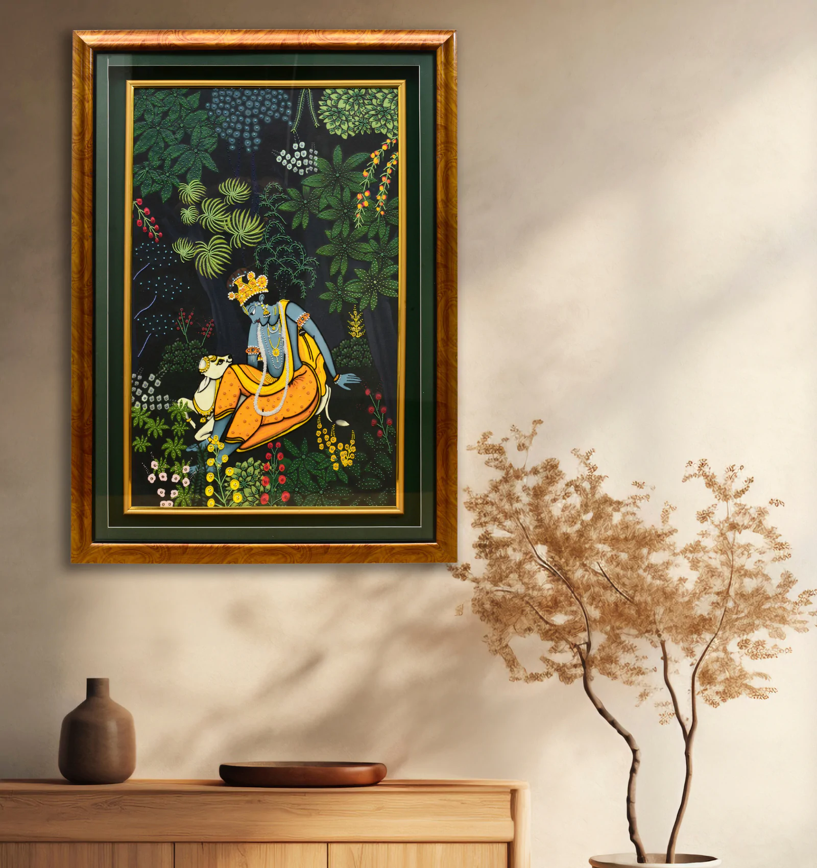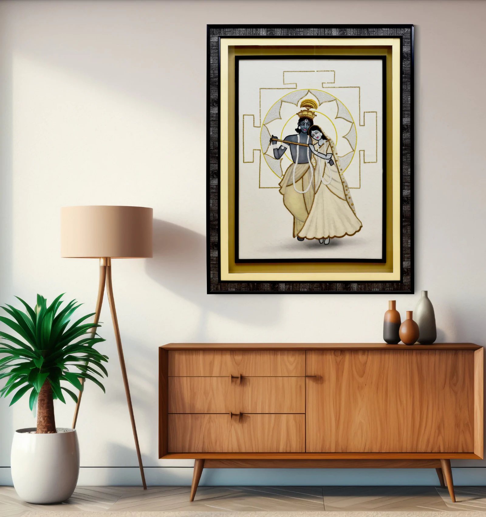 Sacred Art Frames featuring Krishna, Radha, Jain mantras & tribal motifs